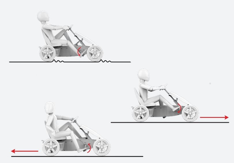 Na het remmen kan je gelijk in zijn achteruit want door het BFR systeem kan de skelter vanuit stilstand direct achteruit rijden. Dat komt goed uit als je wilt inparkeren of moet keren.