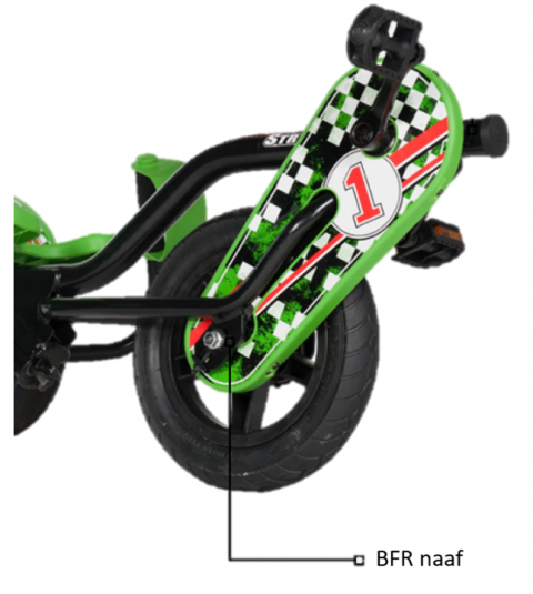 De BERG Street-x is voorzien van een BFR-systeem (brake, freewheel and reverse). Het systeem is verantwoordelijk voor drie functies op de skelter: